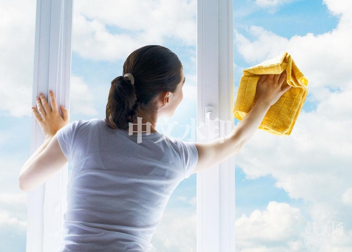 第六步,按照擦玻器的說明方法,從上到下的順序來清洗玻璃。